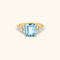 Our Signature Gem Ring in Topaz features a timeless design centered around a natural emerald-cut topaz, accented with subtle diamond like CZ details. An elegant piece that captures the stone’s serene brilliance.